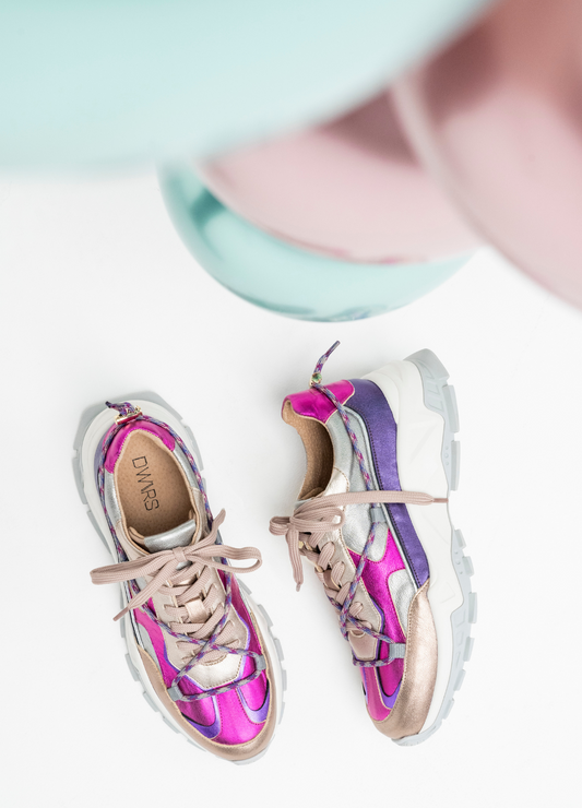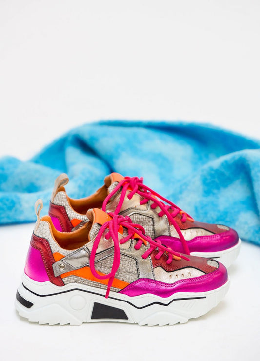 BONNEY leer - Sneakers | Steel / Fuchsia