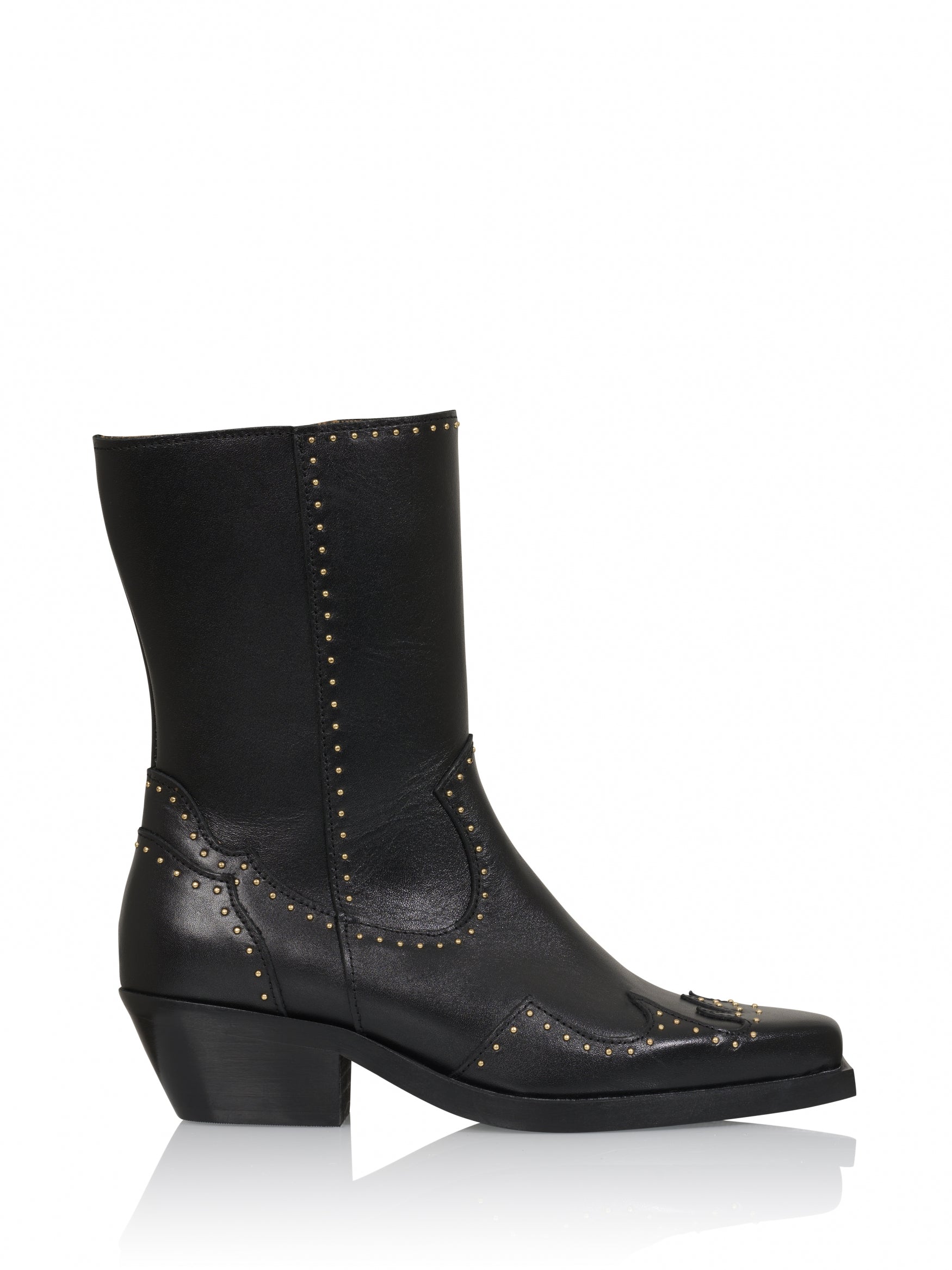 De stoere westernlaars Aspen met gouden studs mag niet ontbreken in je schoenenkast. Met deze zwarte laars steel je meteen de show. De laars is zowel aan de buiten- en binnenkant volledig gemaakt van leer. Stijl de laars met een lange rok en je bent ready to go!