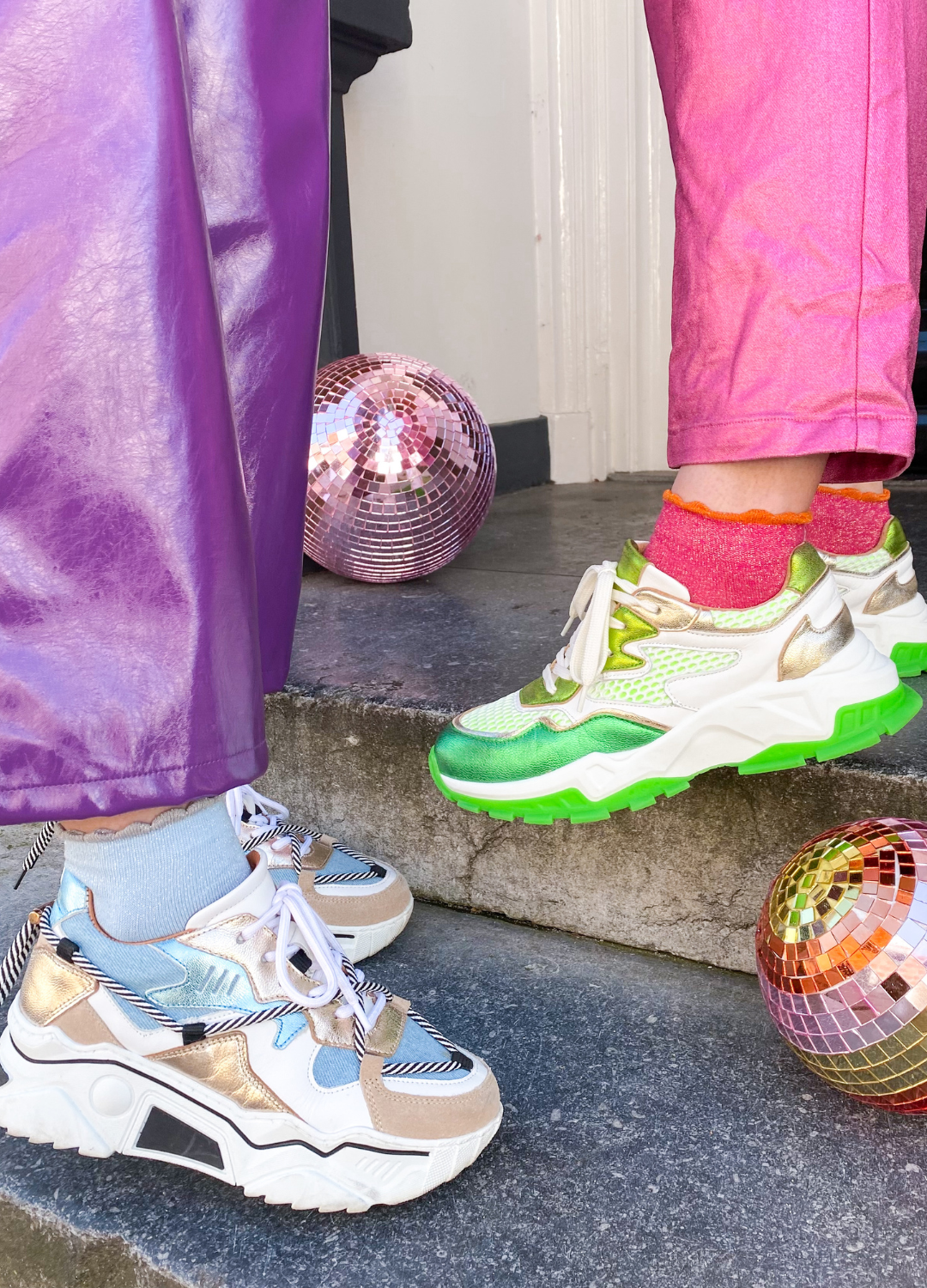 Deze toffe sokken zijn nieuw bij DWRS! Het dragen van je nieuwe DWRS sneakers wordt nog leuker met het combineren van deze te gezellige glitter sokken aan je voeten. De sokken zijn one size