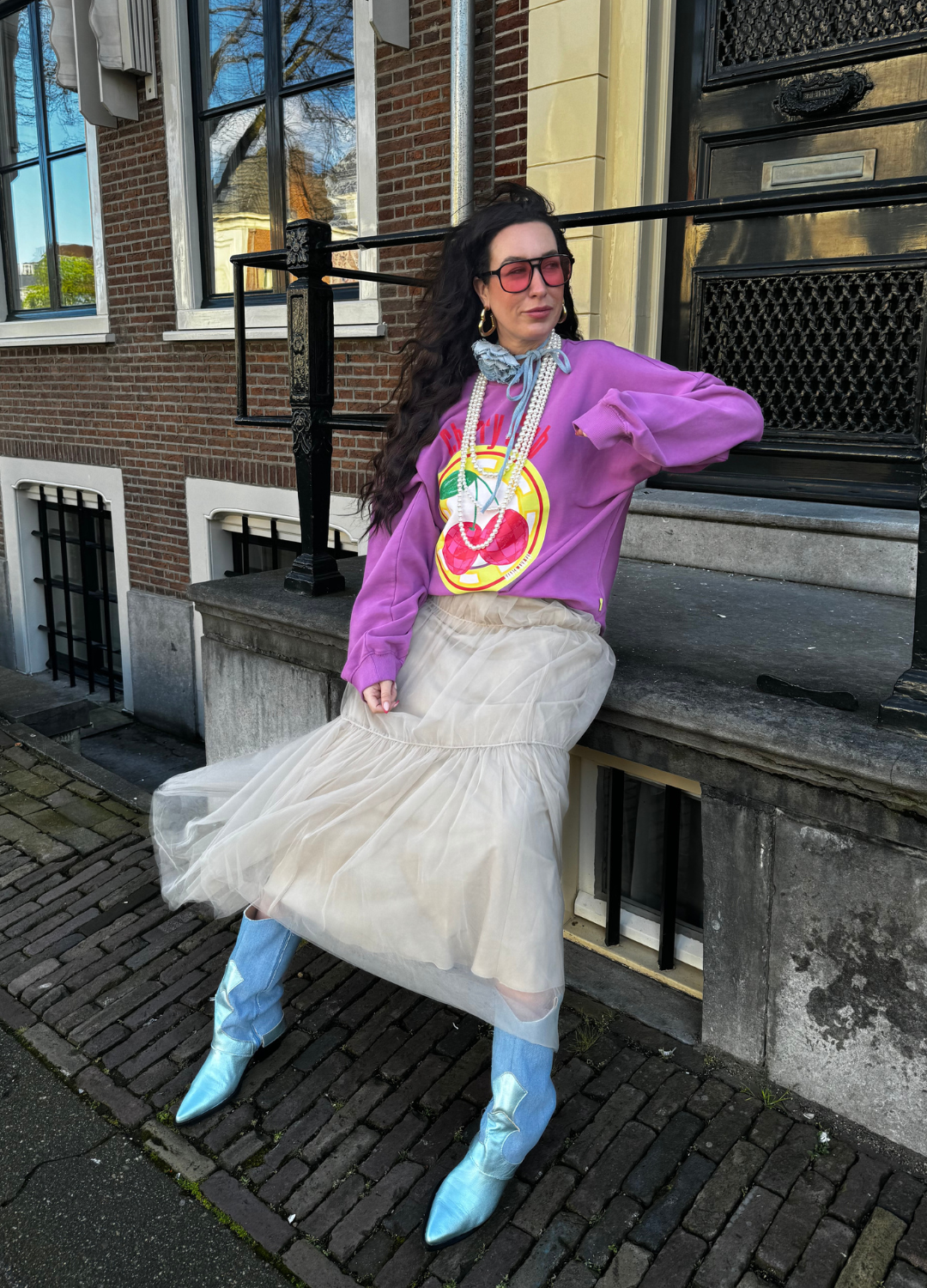 Deze gave westernlaarzen zijn aan de buitenkant van metallic en denim en aan de binnenzijde van leer. Combineer ze met een rokje of jurk om je outfit een stoere touch te geven. Of met een jeans voor een casual look.