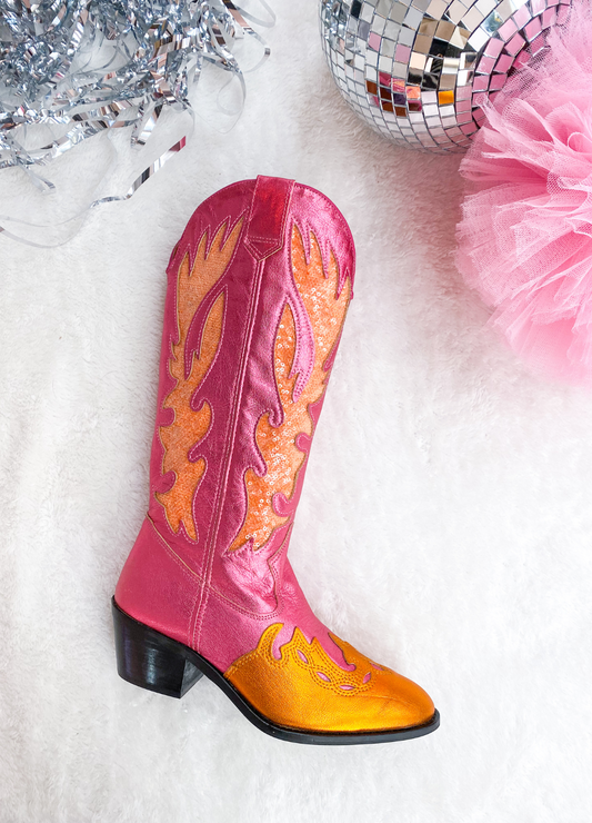 BELLA sequins - Westernboots | Orange / Pink