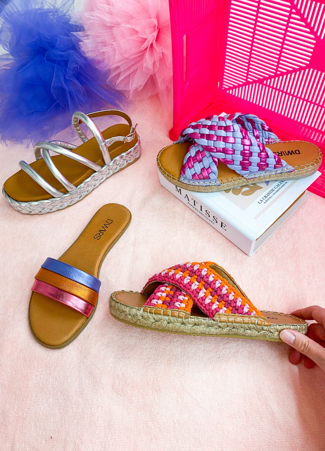Say hi to CYPRUS! Deze nieuwe sandalen zijn ontworpen om jouw outfit nog mooier te maken. De sandalen zijn gemaakt van metallic en hebben een leren voetbed. Hierdoor lopen ze comfortabel. Daarnaast hebben ze een plateauzool van gevlochten details en verschillende bandjes. Hiervan is het enkelbandje verstelbaar.MAATADVIES