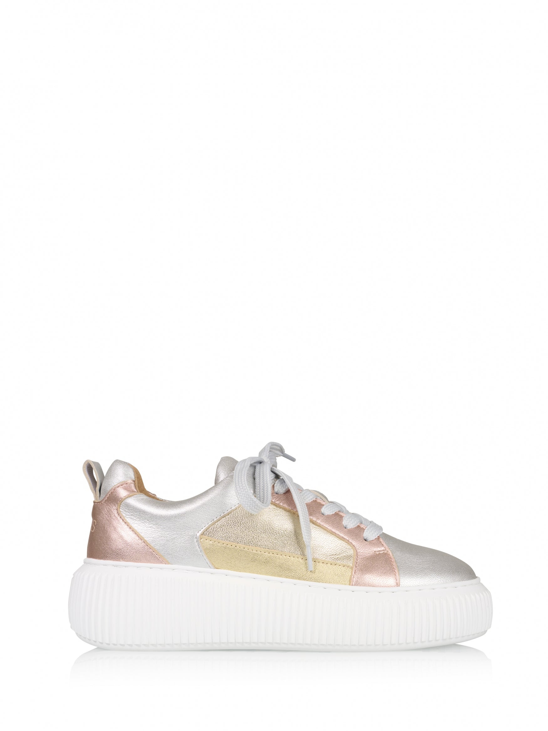 De gave Madison sneakers met hoge zool is nieuw bij DWRS! Deze sneaker is zowel aan de buitenzijde gemaakt van metallic en leer en aan de binnenzijde gemaakt van leer. Draag de Madison onder een leuke broek voor een stoere look.- Kleur: Silver/Champagne