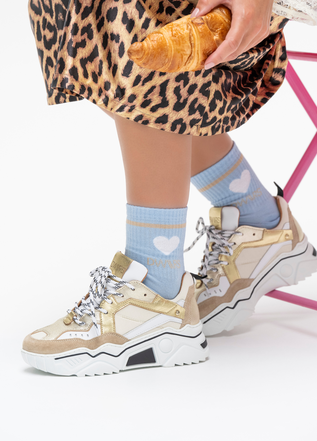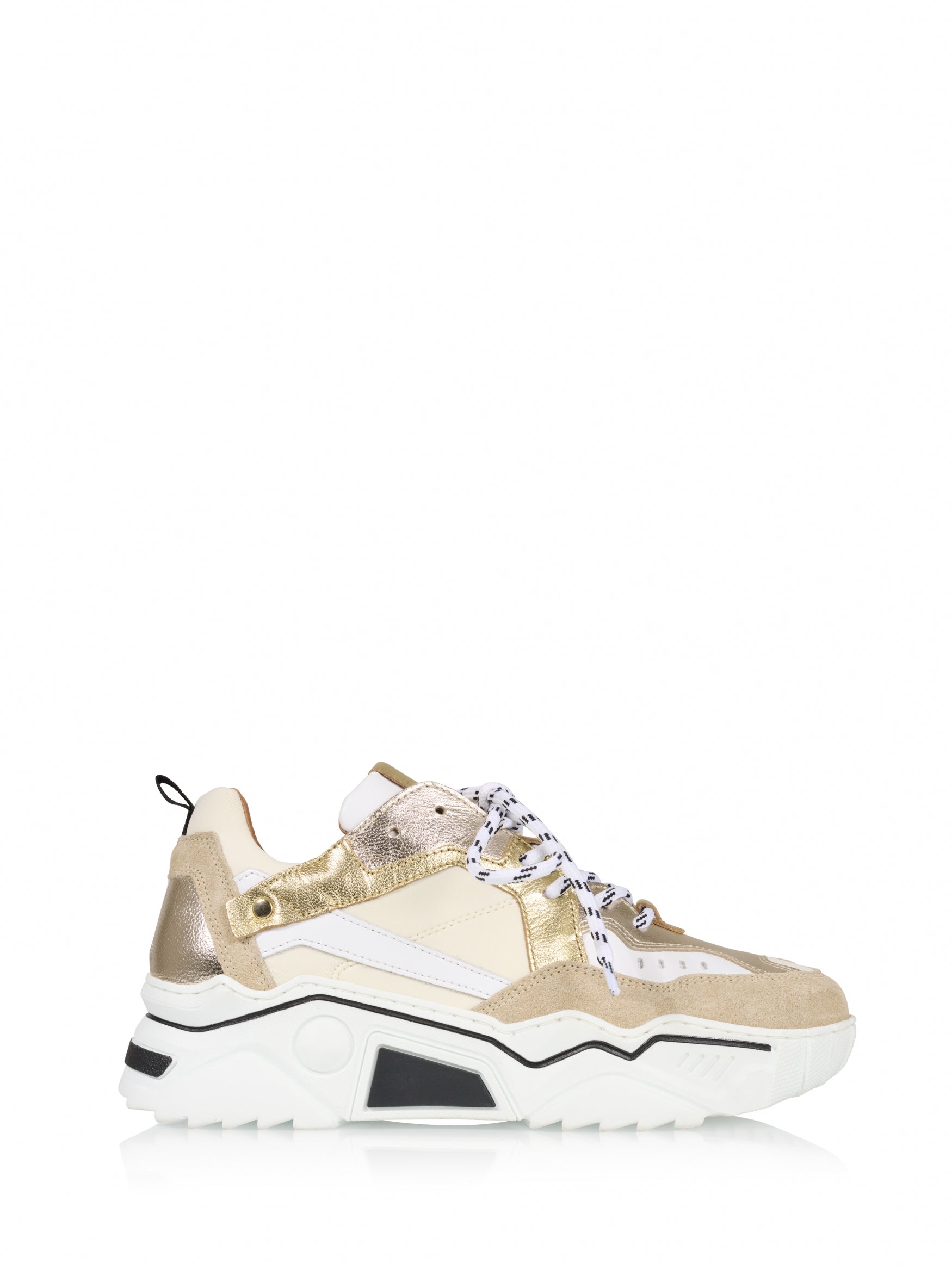 Maxi sneakers zijn helemaal hot! Een sneaker met een chunky zool als dit model is een must in je schoenenkast. Deze sneaker met metallic details voor dames is aan de buitenzijde van metallic en leer en aan binnenzijde volledig van leer. Door de chunky zool is de sneaker perfect te combineren met verschillende outfits. Zie jij de Pluto al aan je voeten?